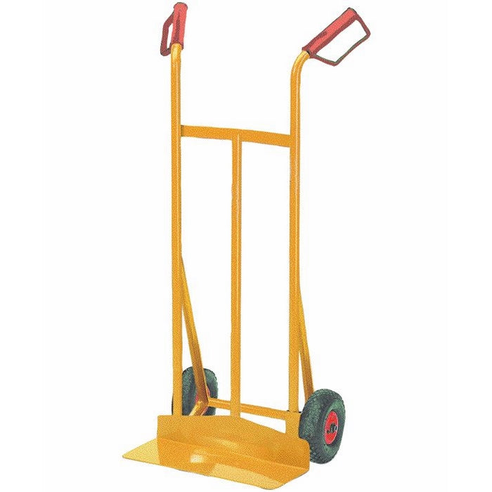 Piano d'appoggio 45x21 cm. - Telaio tubolare in acciaio verniciato 25 mm. - Ruote pneumatiche 260x85 mm. - Utilizzabile per casse, sacchi e fusti