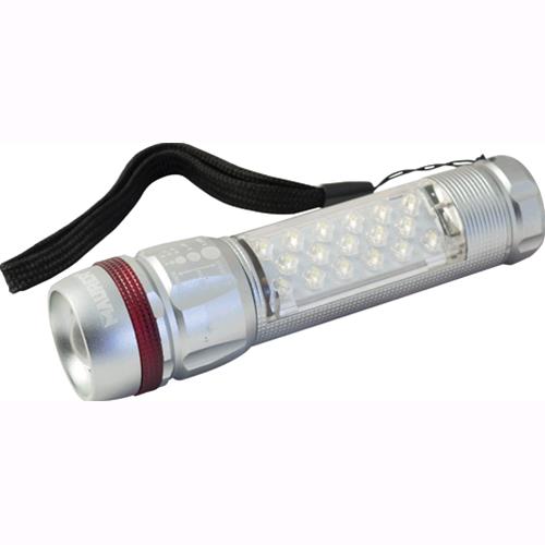 Torcia led in alluminio - Led ad alta luminosit? frontale con zoom + 17 led laterali con funzione On e Flash - Funziona con 2 batterie AAA (non incluse)