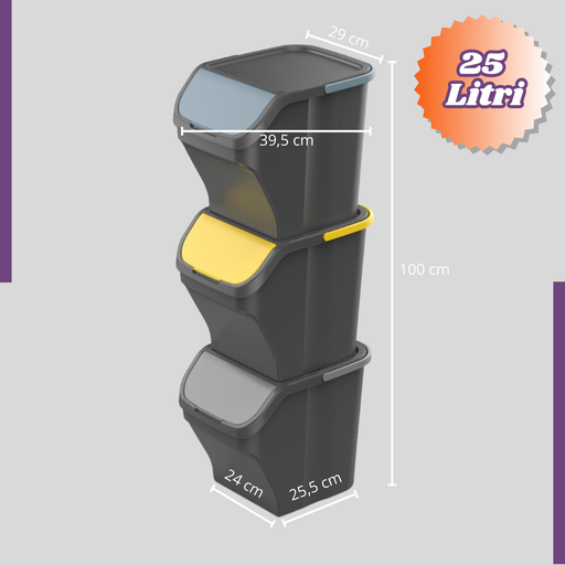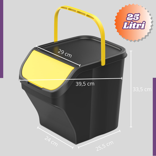 Pattumiera modulare da 25 litri: Compatta e pratica con maniglia, perfetta per piccole raccolte differenziate. Prezzo: da 9,90 €.