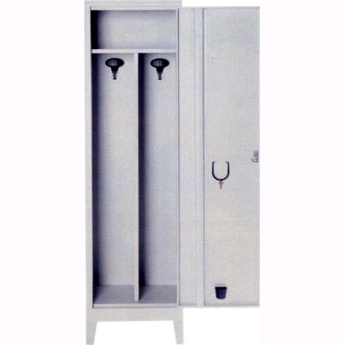 FORNITO SMONTATO - In lamiera verniciata colore grigio - Con: appendiabiti, ripiano interno, serratura, feritoie, porta cartellino, porta asciugamani, porta ombrelli, paratia centrale - 1 anta - 4 piedini da montare