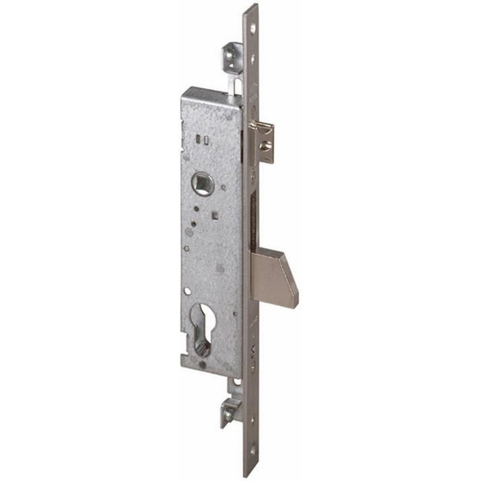 Per montanti - Zincata - Chiusura triplice - Una mandata e scrocco regolabile - Testata in acciaio inox - Cilindro sagomato non incluso - A richiesta aste 06441.10 - A richiesta contropiastre - 06463.04/05/06/07/08/09