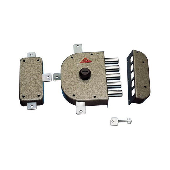Da applicare cilindro a pompa mm. 60 a 6 gorges - Chiusura quintupla senza scrocco - Cassa verniciata - Entrata 60 mm. - 3 chiavi art.12