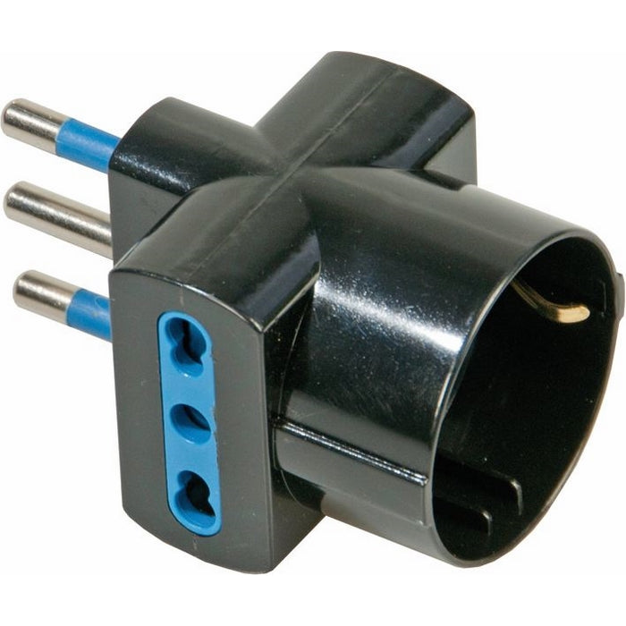 Adattatore Triplo Spina10A+2 Prese10A+1 Schuko colore Nero Maurer